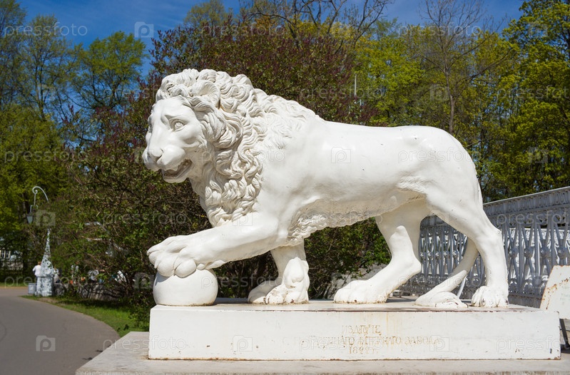 Скульптура льва у входа в Елагинский дворец. Санкт-Петербург, Россия