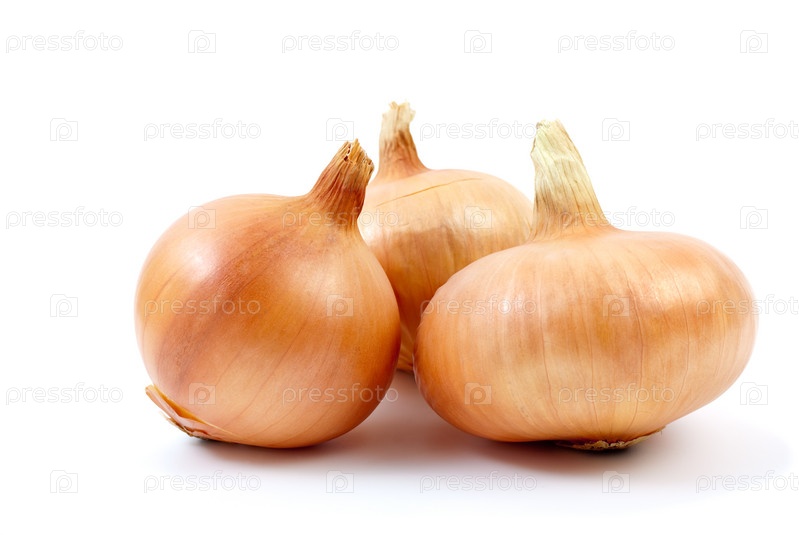 Три луковицы на белом фоне