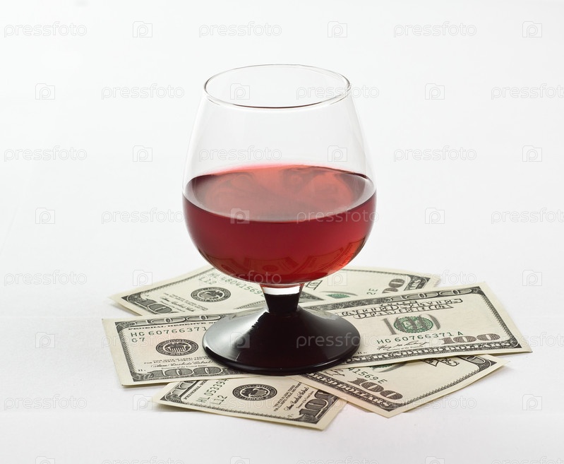 Бокал с вином и доллары