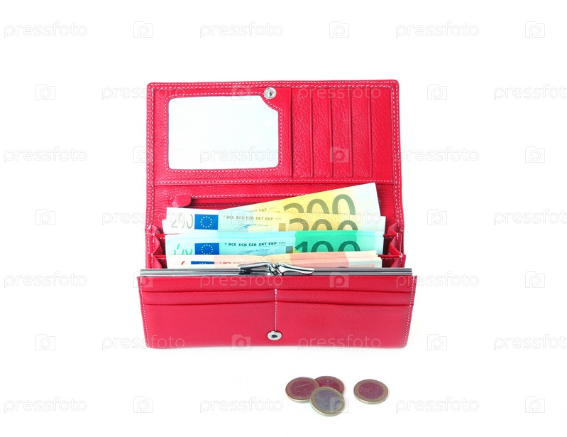 Открытый розовый кошелек с деньгами