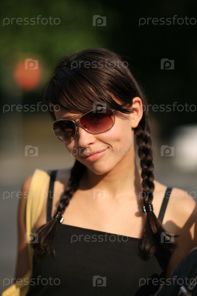 Портрет улыбающейся девушки в солнцезащитных очках