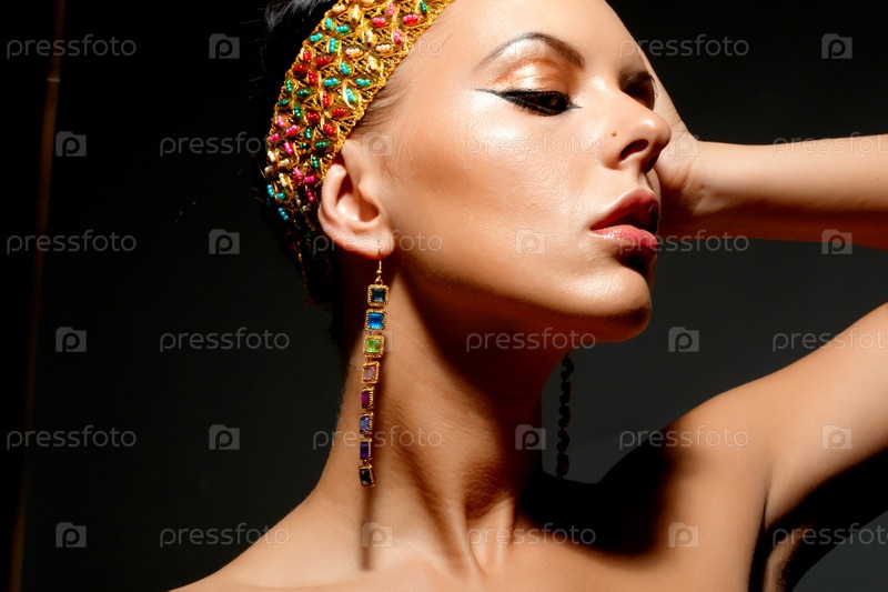 Портрет гламурной изящной женщины с украшениями, на черном фоне