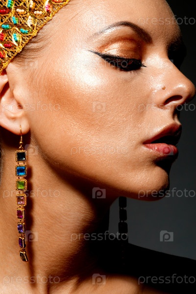 Портрет гламурной изящной женщины с украшениями, на черном фоне
