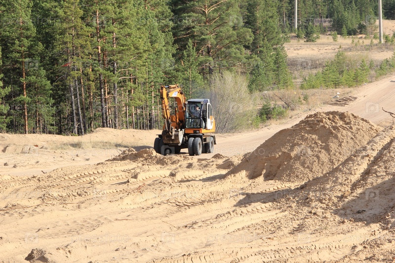 Экскаватор добывает песок