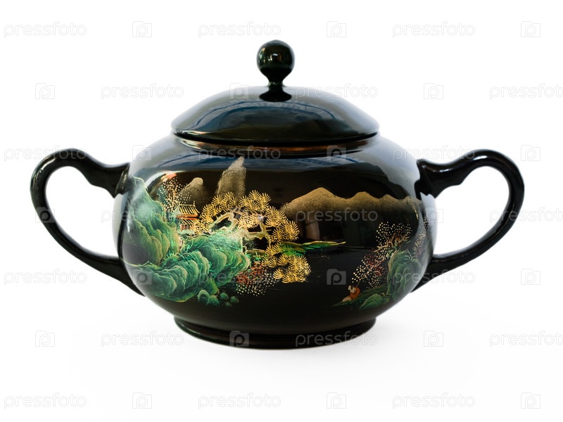Древняя китайская сахарная миска изолирована на белом фоне