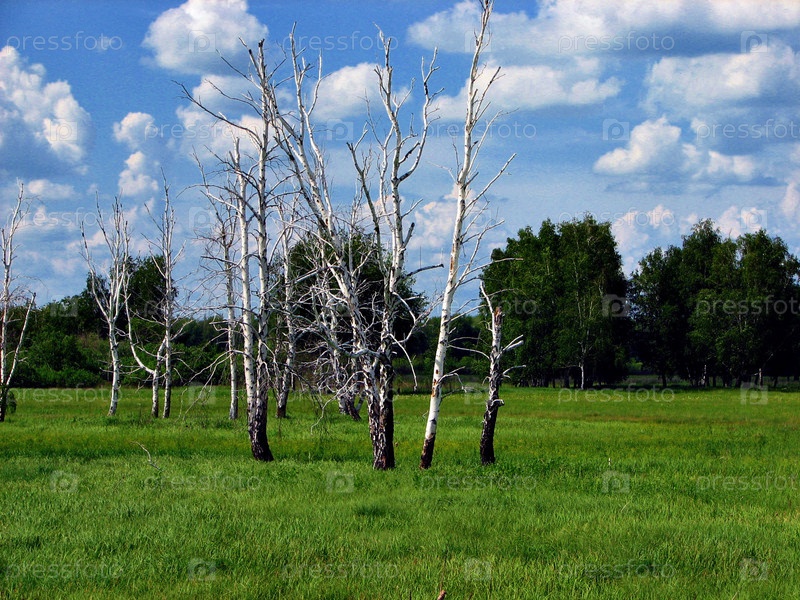 Засохшие березы в поле