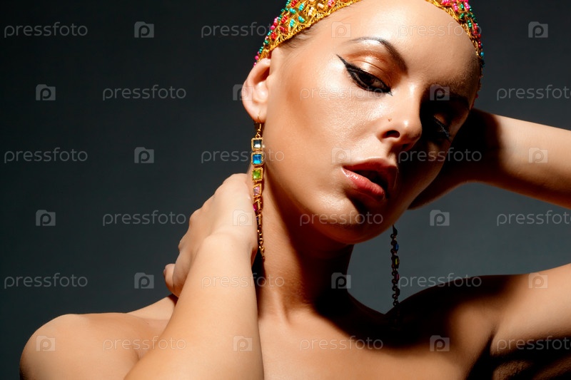 Портрет гламурной изящной женщины с украшениями, на черном фоне