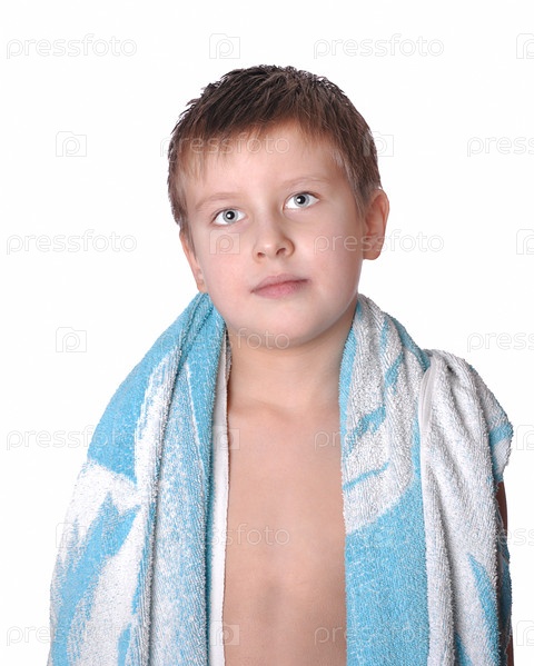 Веселый ребенок после ванны, изолированный на белом фоне