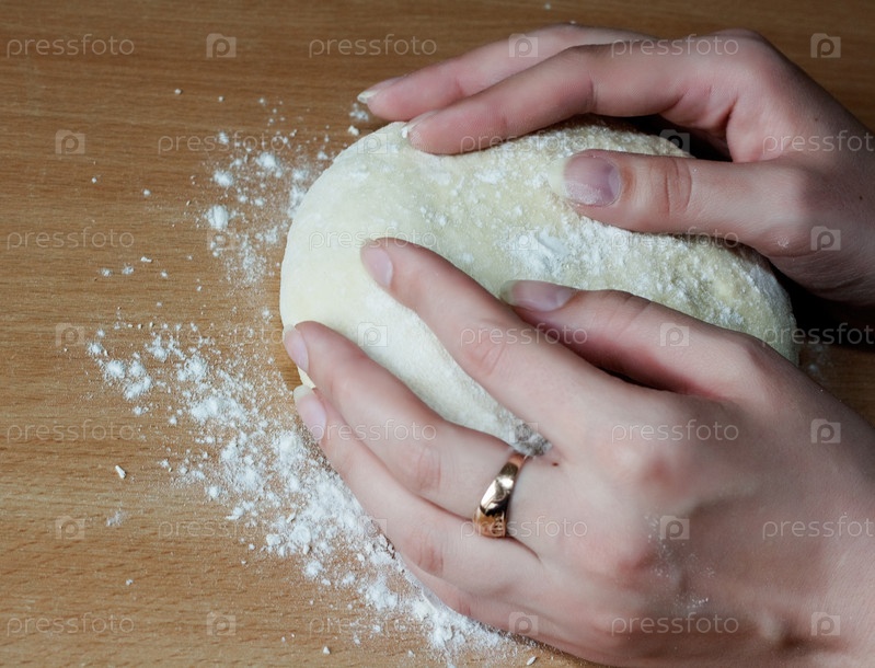 Женщина разминает тесто