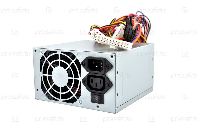 Блок питания для компьютера на белом фоне