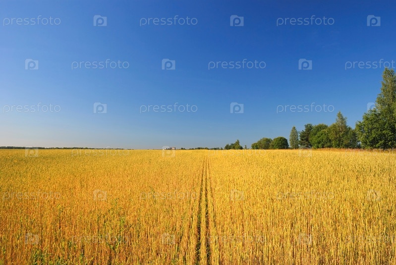 Золотая пшеница на фоне синего неба