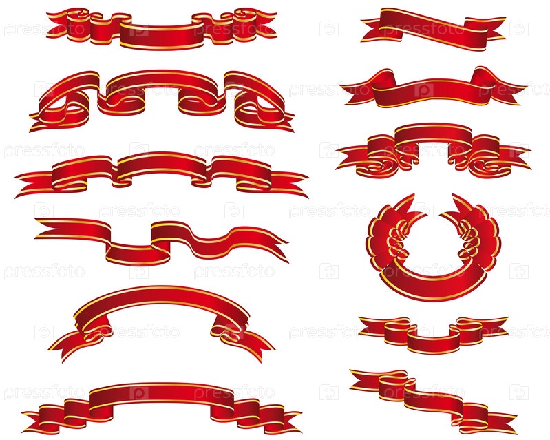 Набор различных красных лент на белом фоне