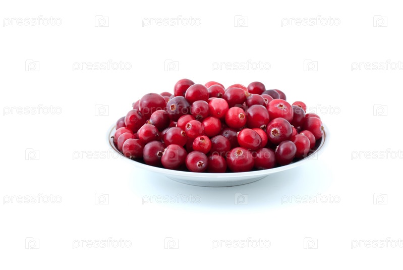 Блюдце с клюквой. Белый фон