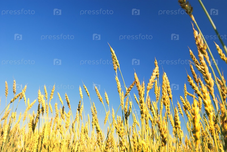Золотая пшеница на фоне синего неба