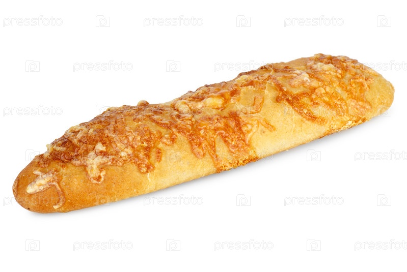 "Сырная палочка" - булка, покрытая плавленным сыром на белом фоне