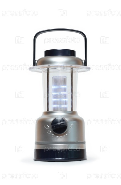 Современная лампа на батареях, изолирована на белом