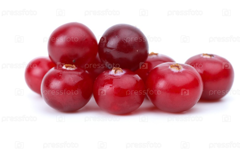 Ягоды клюквы крупным планом. Белый фон