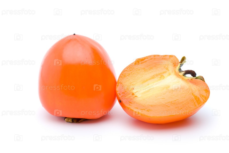 Целая хурма и половинка на белом фоне