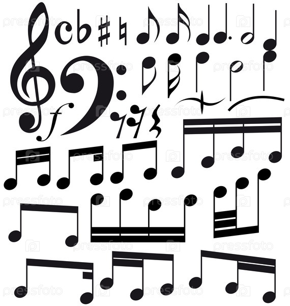 Полный набор нотных знаков, на белом фоне