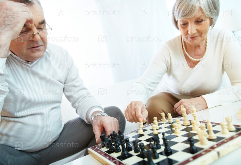 Пожилые люди играют в шахматы