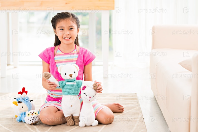Маленькая счастливая девочка с мягкой игрушкой
