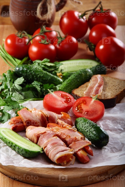 Мясная закуска, зелень и свежие овощи