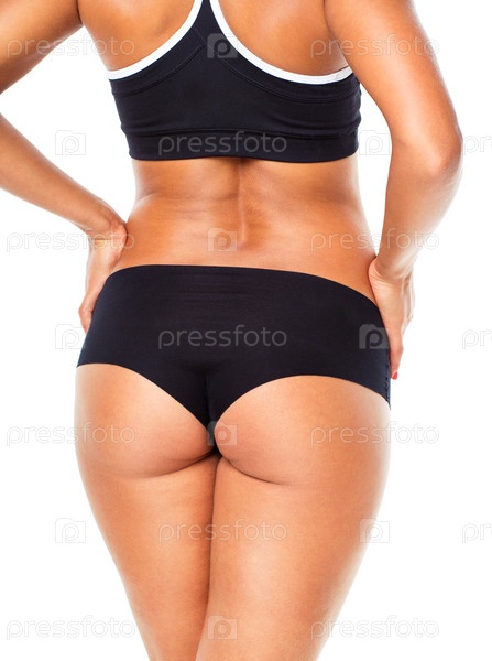 Спортивная женщина на белом фоне, вид со спины