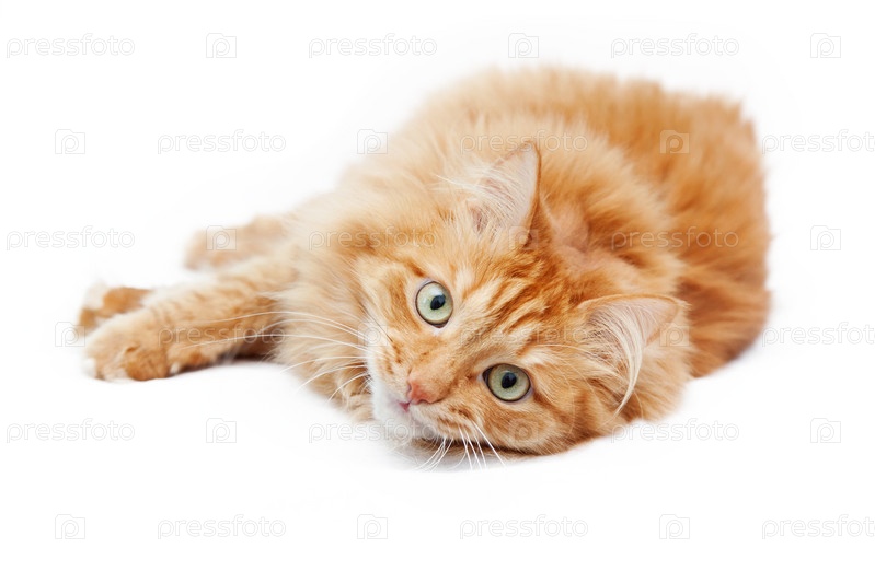 Рыжий кот, изолированный на белом фоне