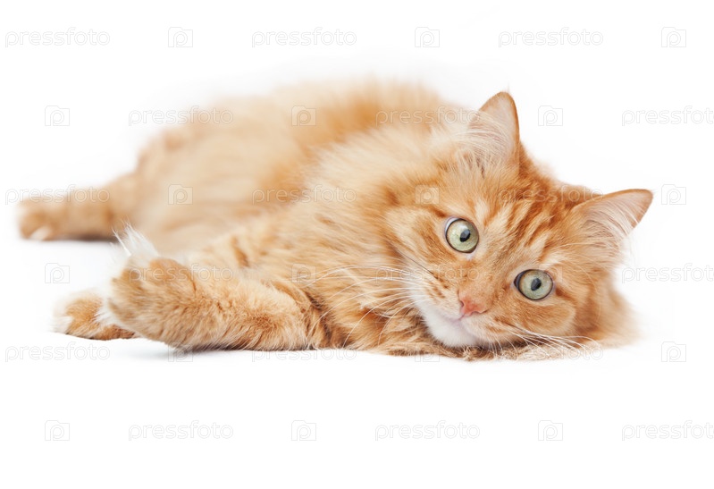 Рыжий кот, изолированный на белом фоне