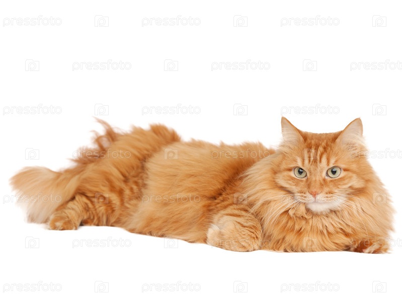 Пушистый рыжий кот, изолированный на белом фоне