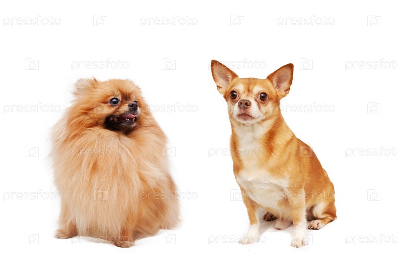 Померанский шпиц и чихуахуа, изолированные на белом фоне