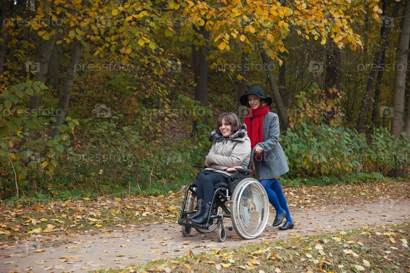 Женщина в инвалидной коляске в парке