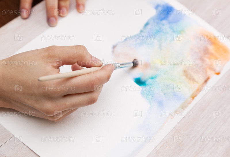 Художник рисует акварелью