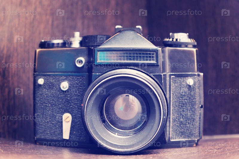 Старинный фотоаппарат на полке в шкафу