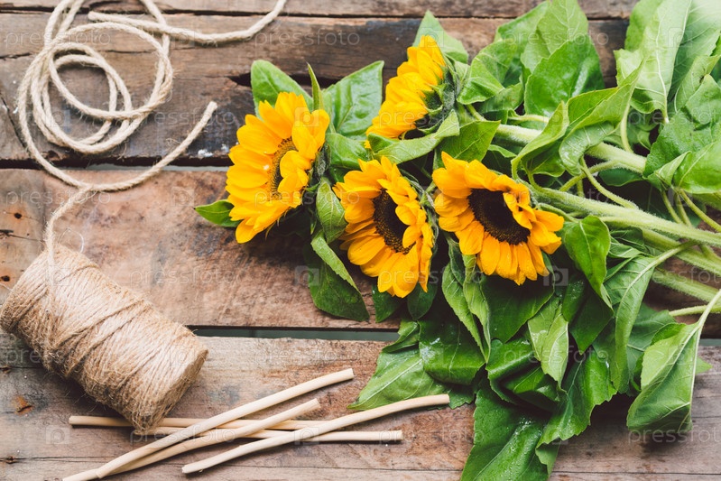 Изготовление букета из подсолнухов