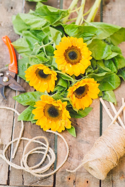 Изготовление букета из подсолнухов