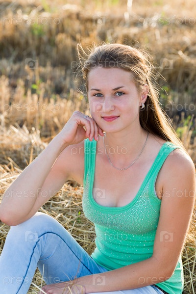 Девушка отдыхает в поле