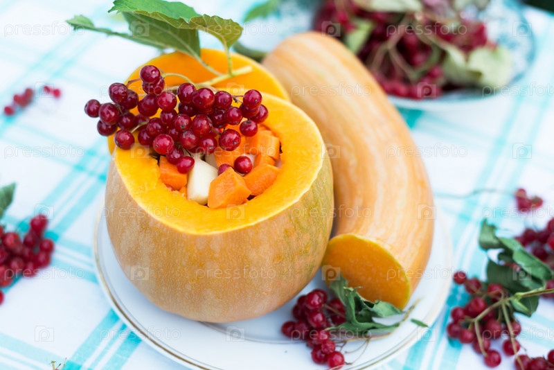 Тыква с начинкой из овощей и калины