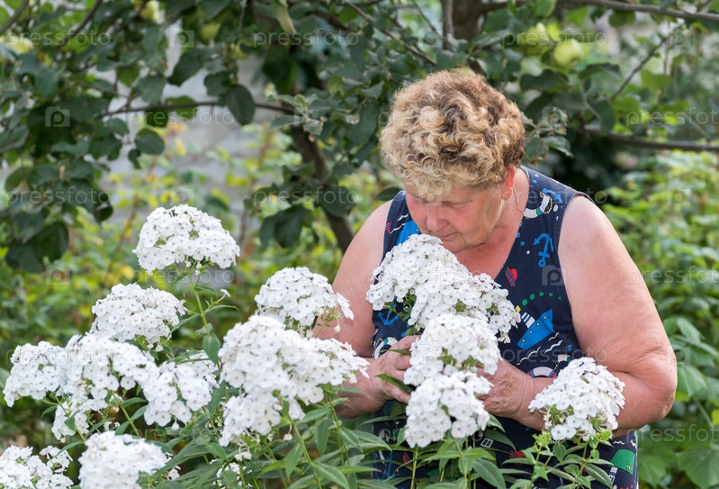 Пожилая женщина в саду