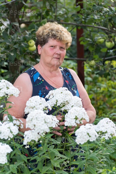 Пожилая женщина в саду