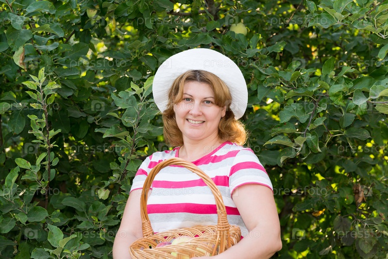 Женщина с корзиной яблок