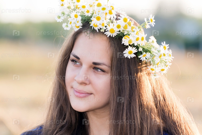 Девушка в венке из ромашек