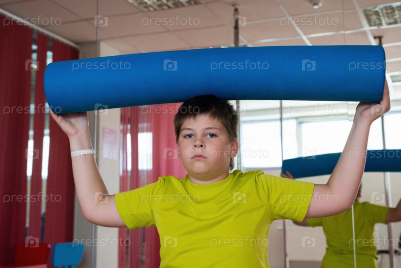 Мальчик занимается в тренажерном зале