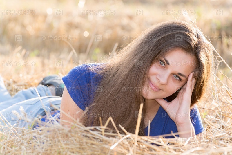 Девушка отдыхает в поле