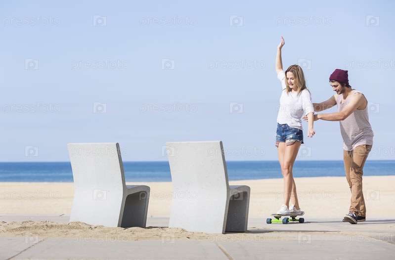 Девушка балансирует на скейтборде