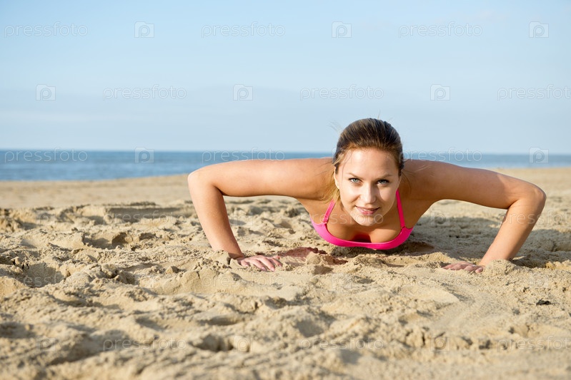 Женщина отжимается