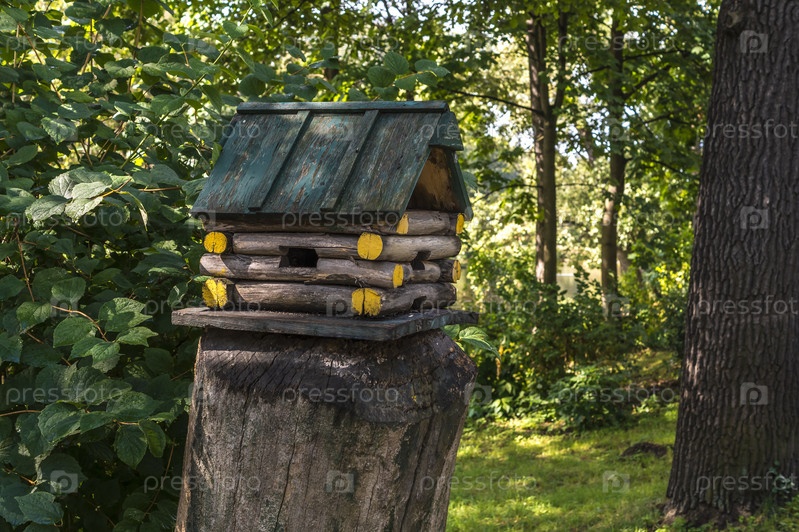 деревья пенек домик кормушка белка