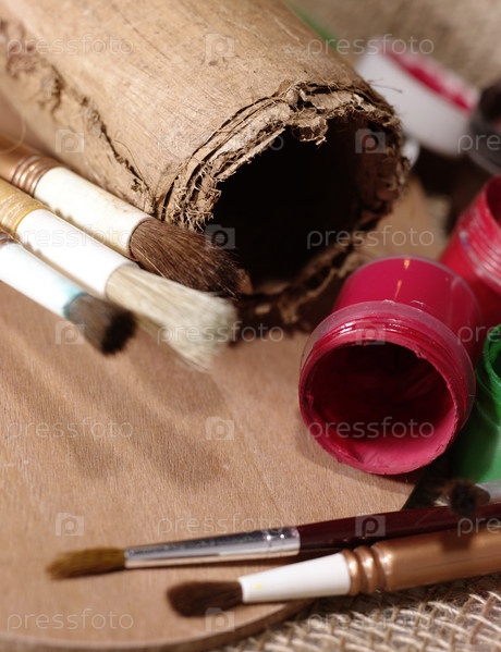 Абстрактное искусство натюрморта с помощью краски и кистей