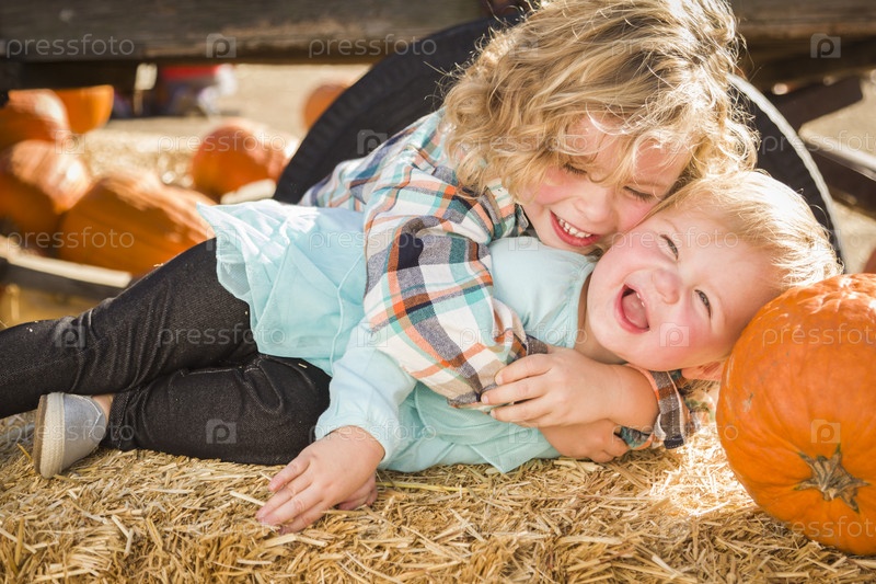 Дети на тыквенной ферме