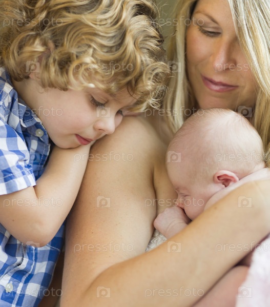 Женщина с сыном и новорожденным